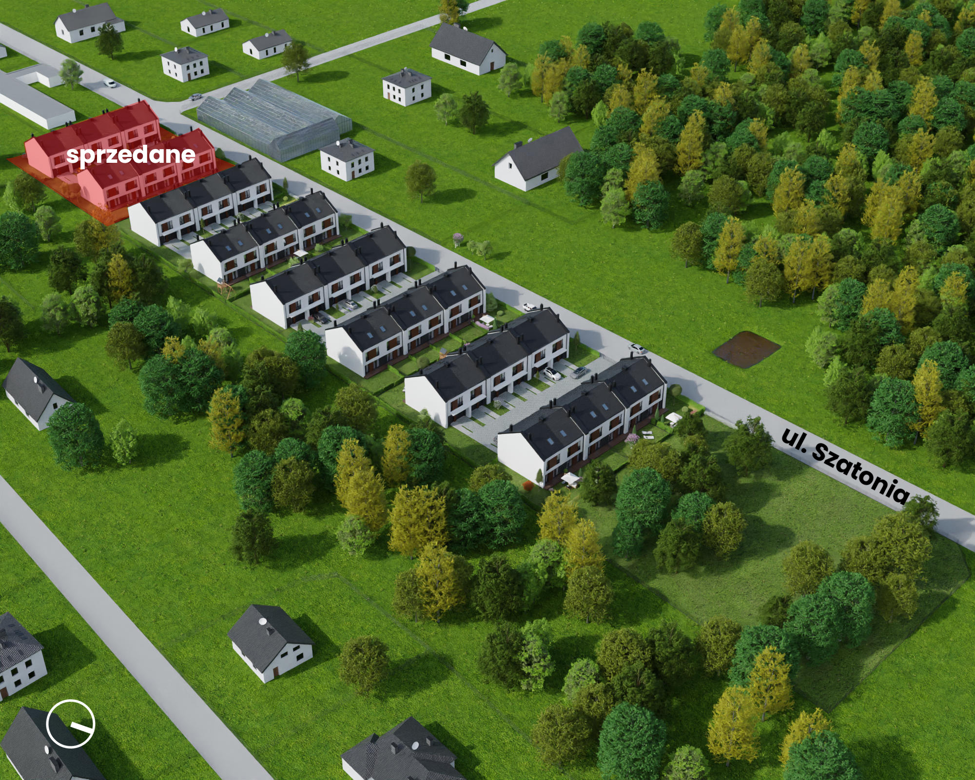 Osiedle Szatonia to nowoczesna, powstająca w czterech etapach inwestycja, która łącznie będzie obejmować 48 domów jednorodzinnych w zabudowie szeregowej. Domy dostępne są w trzech wariantach, różniących się powierzchnią: 108 m² (pierwszy etap), 111,34 m² (drugi etap) oraz 114,5 m² (trzeci i czwarty etap). Przemyślane układy pomieszczeń pozwalają na aranżację wnętrz według własnego uznania. Na parterze znajduje się przestronny salon z aneksem kuchennym, łazienka i wiatrołap z miejscem np. na szafę. Piętro to trzy funkcjonalne pokoje oraz garderoba i druga przestronna łazienka. Domy mają również poddasze do dowolnej aranżacji – można tam np. stworzyć gabinet do pracy lub prywatne centrum rozrywki.