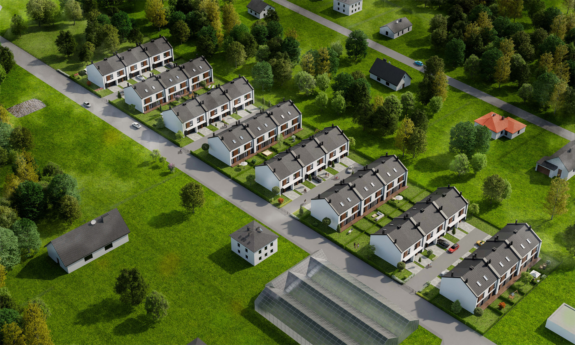 Do każdego domu przypisany jest garaż w bryle budynku (17,16 m²) oraz miejsce postojowe przed nim, więc zawsze jest gdzie zaparkować swój własny samochód lub auta gości. Domy mają również indywidualne ogródki – przestrzeń, umożliwiającą błogi odpoczynek na świeżym powietrzu. Budynki zostały wykonane w technologii tradycyjnej. Cechuje je znakomita izolacja akustyczna oraz termiczna (ocieplenie styropianem 20 cm i dobrej jakości stolarka okienna). We wnętrzach zastosowano ogrzewanie podłogowe, zapewniające wysoki komfort cieplny, zdrowsze warunki mieszkania, a także łatwiejszą aranżacje wnętrza. Ponadto w każdym domu salon wyposażony jest w przewód kominowy wraz z wentylacją i napowietrzeniem, a zatem istnieje możliwość wykonania kominka jako dodatkowego źródła ciepła. Teren inwestycji jest ogrodzony i zamykany automatyczną bramą. Osiedle Szatonia to miejsce, które pozwoli cieszyć się wygodą singlom, młodym parom oraz rodzinom z dziećmi, tworząc idealną przestrzeń do spokojnego życia.
